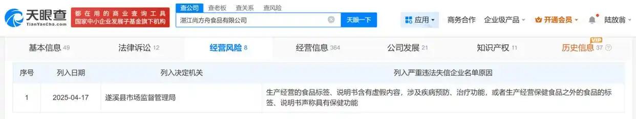 因“保水虾仁”被的“湛江尚食物无限公司”,正在2025年4月14日被遂溪县市场监视办理局施以包罗“吊销食物出产许可证、五年内不得申请;处226万余元罚款;以及全数涉案食物(虾仁)和违法所得”的行政“沉罚”。该企业还因“出产运营的食物标签、仿单含有虚假内容,涉及疾病防止、医治功能,仿单声称具有保健功能”,于客岁4月17日被遂溪县市场监视办理局列入严沉违法失信企业名单。
